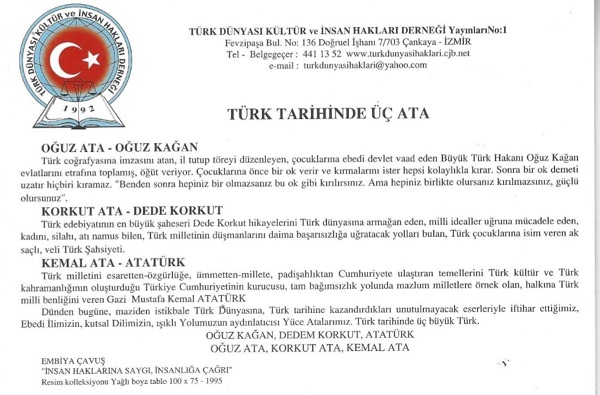 Sosyo Politik alanlarda faaliyet gösteren, yaptığı etkinlik ve yayımlarla Türk Dünyasına önemli hizmetlerde bulunan Türk Dünyası Kültür ve İnsan Hakları Derneği, 5 Aralık’ta Aydın Adnan Menderes Üniversitesi’nin düzenlediği Yörük Çalıştayı programı nedeniyle Çalıştay Başkanı Prof. Dr. Turan Akkoyun’a bir kutlama mesajı gönderdi.