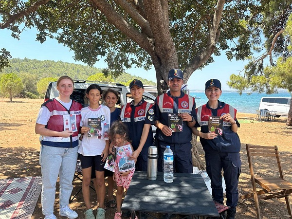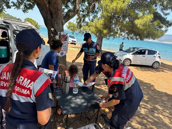 Açıklamanın devamında, “Yasak olmayan alanlarda ise sigara izmaritleri ve cam atıklar gibi yangına sebebiyet verebilecek etkenlere karşı duyarlı ve dikkatli olmaları, gelecek nesillere temiz çevre temiz doğa bırakılmasının aynı zamanda bir vatandaşlık görevi olduğu aktarılarak, vatandaşlar KADES hakkında bilgilendirilmiş, uygulamayı telefonlarına yüklemelerine yardımcı olunmuş, Kadına El Kalkamaz ile Her Şey Elimizde mottosuyla Ormanlık Alanlarda Dikkat Edilmesi Gereken Kurallar broşürleri, çocuklara ise jandarma boyama kitabı dağıtılmıştır” bilgisine yer verildi.