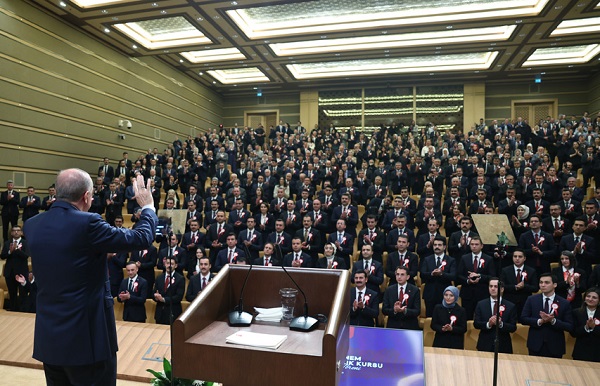 Konuşmaların ardından, kursta dereceye giren kaymakam adaylarına sertifikaları Cumhurbaşkanı Erdoğan tarafından takdim edildi.